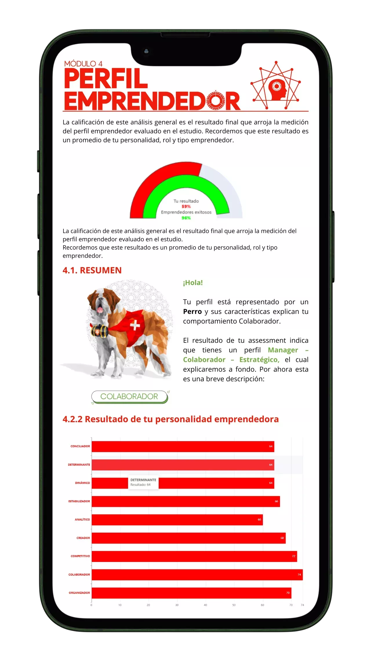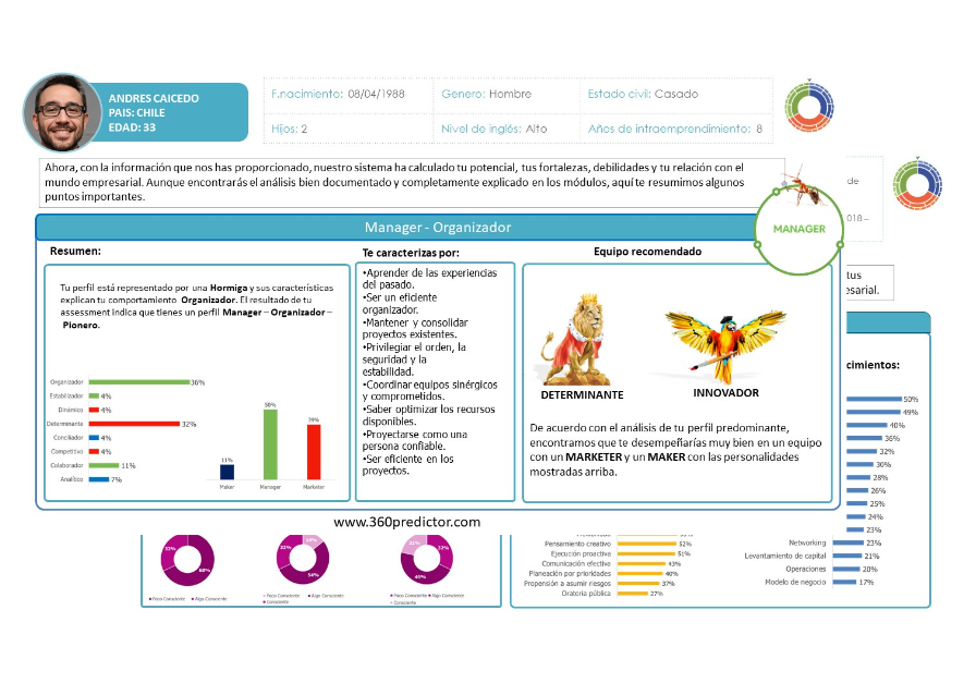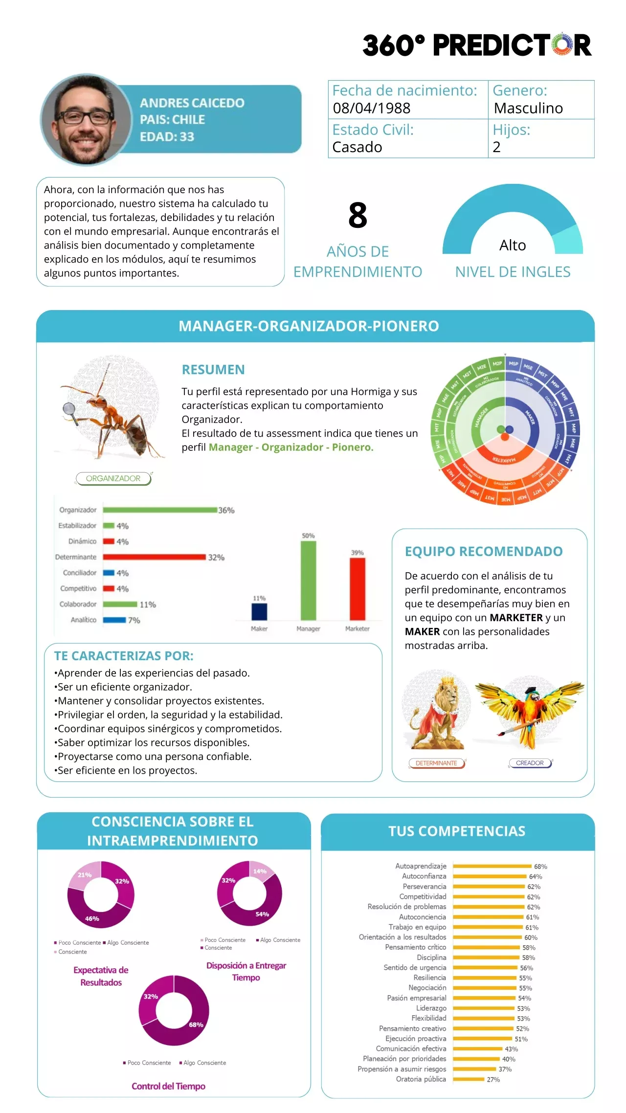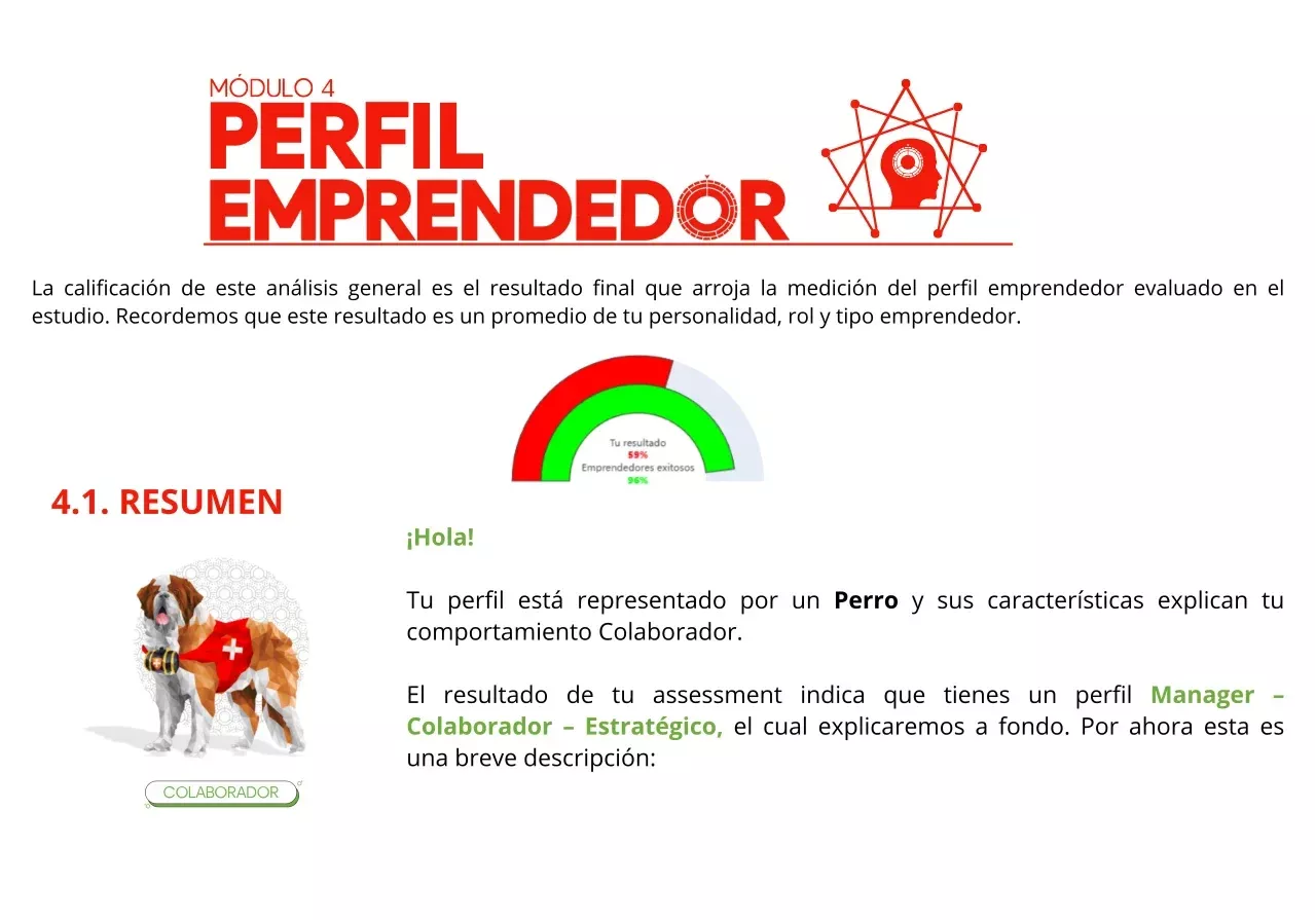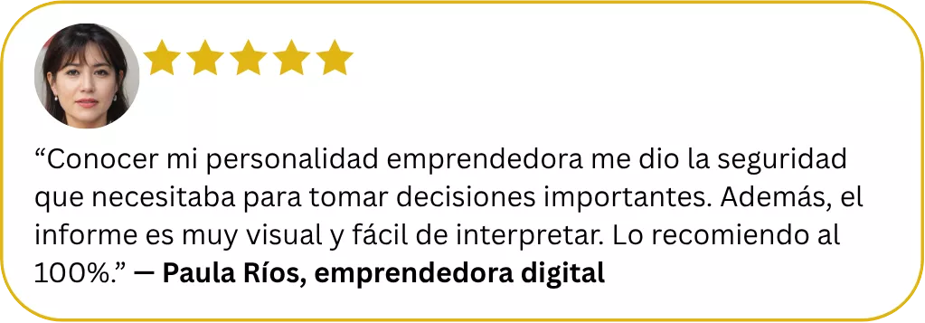 Con un informe visual, personalizado y basado en datos reales sobre tu personalidad, estilo y rol emprendedor