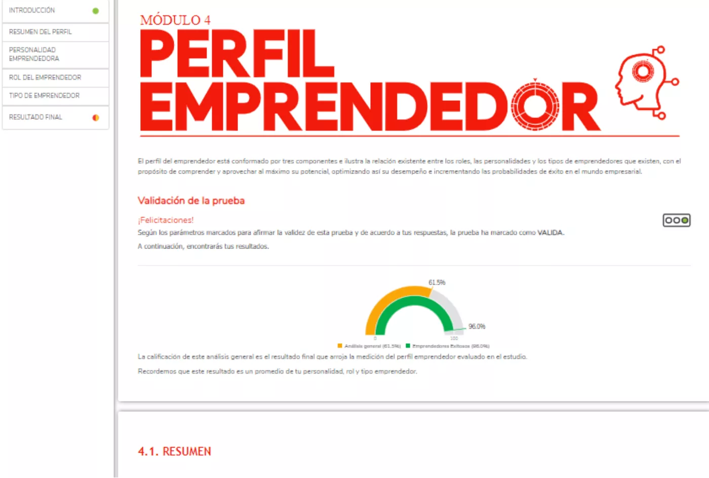 • Sugerencias concretas para mejorar tu desempeño emprendedor: Recibirás consejos prácticos que puedes aplicar de inmediato según tus fortalezas y debilidades.