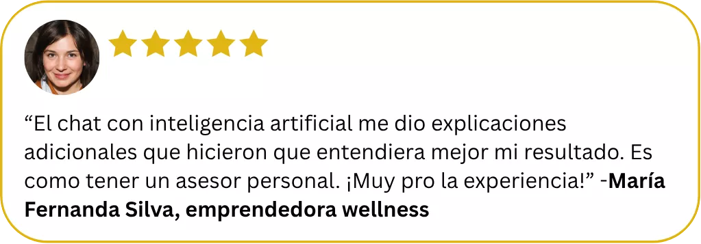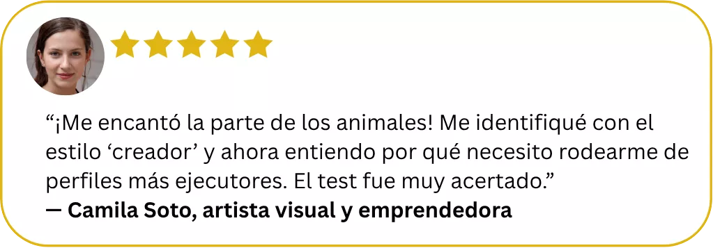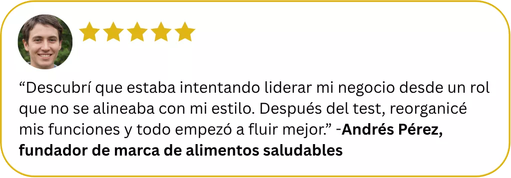 “Tomar el test fue un antes y un después. Siempre sentí que me costaba organizar mi negocio, pero no entendía por qué. El informe me mostró que estaba forzando un rol que no iba con mi perfil. Desde que me enfoqué en mis fortalezas, delegué lo que me drenaba y redefiní mi enfoque, todo empezó a fluir con más claridad.