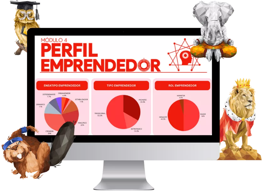 • Un análisis de tu personalidad clara y visual: Descubrirás a cual de las 9 personalidades emprendedoras perteneces y como puedes detonar tus habilidades naturales a favor de tu emprendimiento.